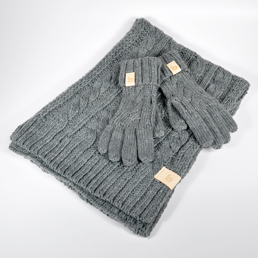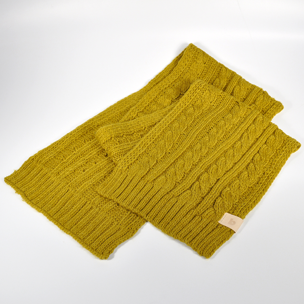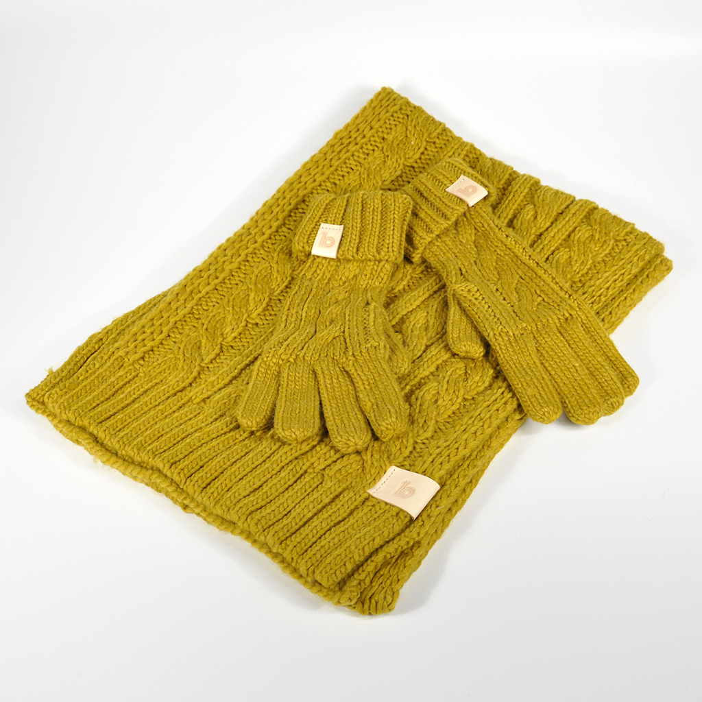 Chunky Scarf and Gloves • 100% soft feel acrylic scarf and gloves • Heavyweight chunky cable knit • Natural vegetable tanned calf leather patches • Hand stamped with embossed ob1 logo • Hand stitched patches • One size • Available in Mustard or Grey £35 Like Loading...