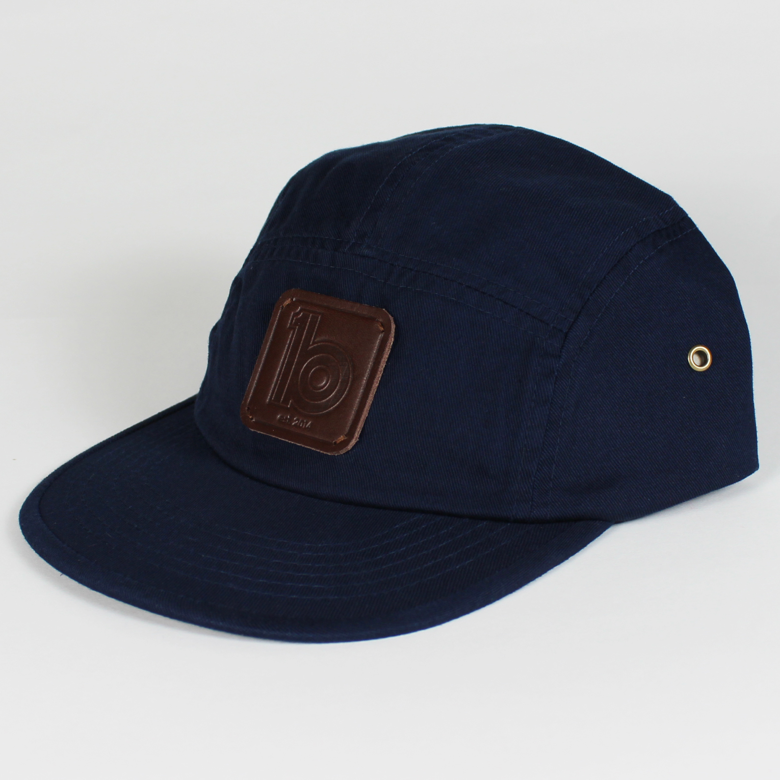 Dark Navy 5 Panel • 100% brushed cotton twill 5 panel cap • Adjustable snap fastening strap closure • 4 metal eyelets • Brown vegetable tanned leather patch • Hand stamped with embossed ob1 logo • Hand stitched patch • One size £16 Like Loading...