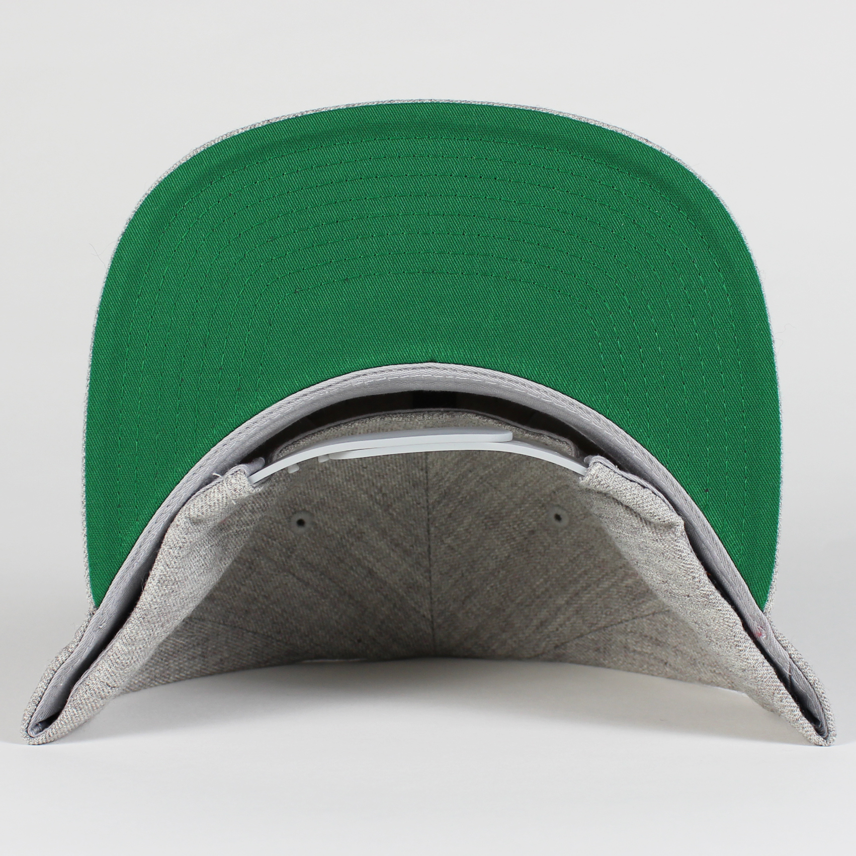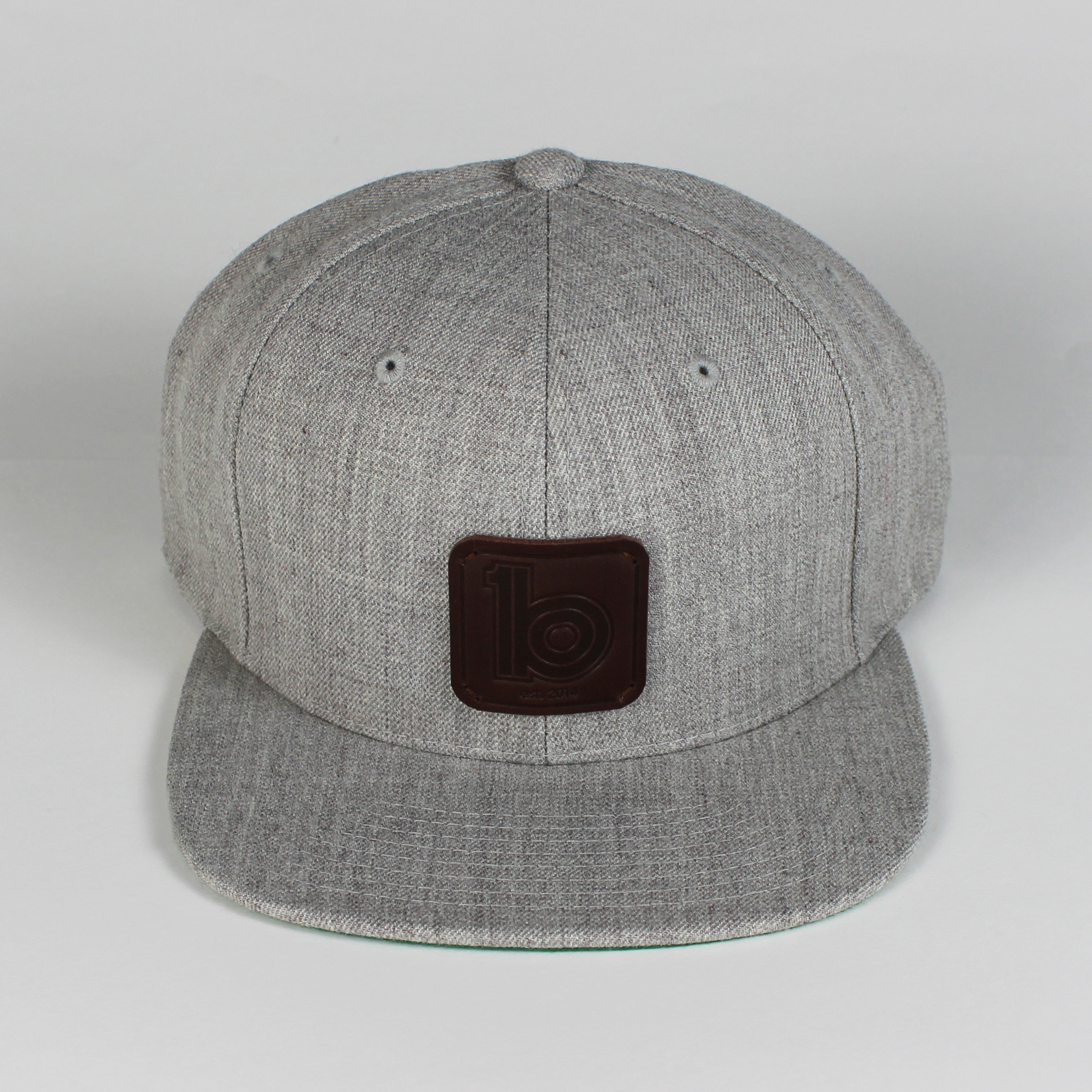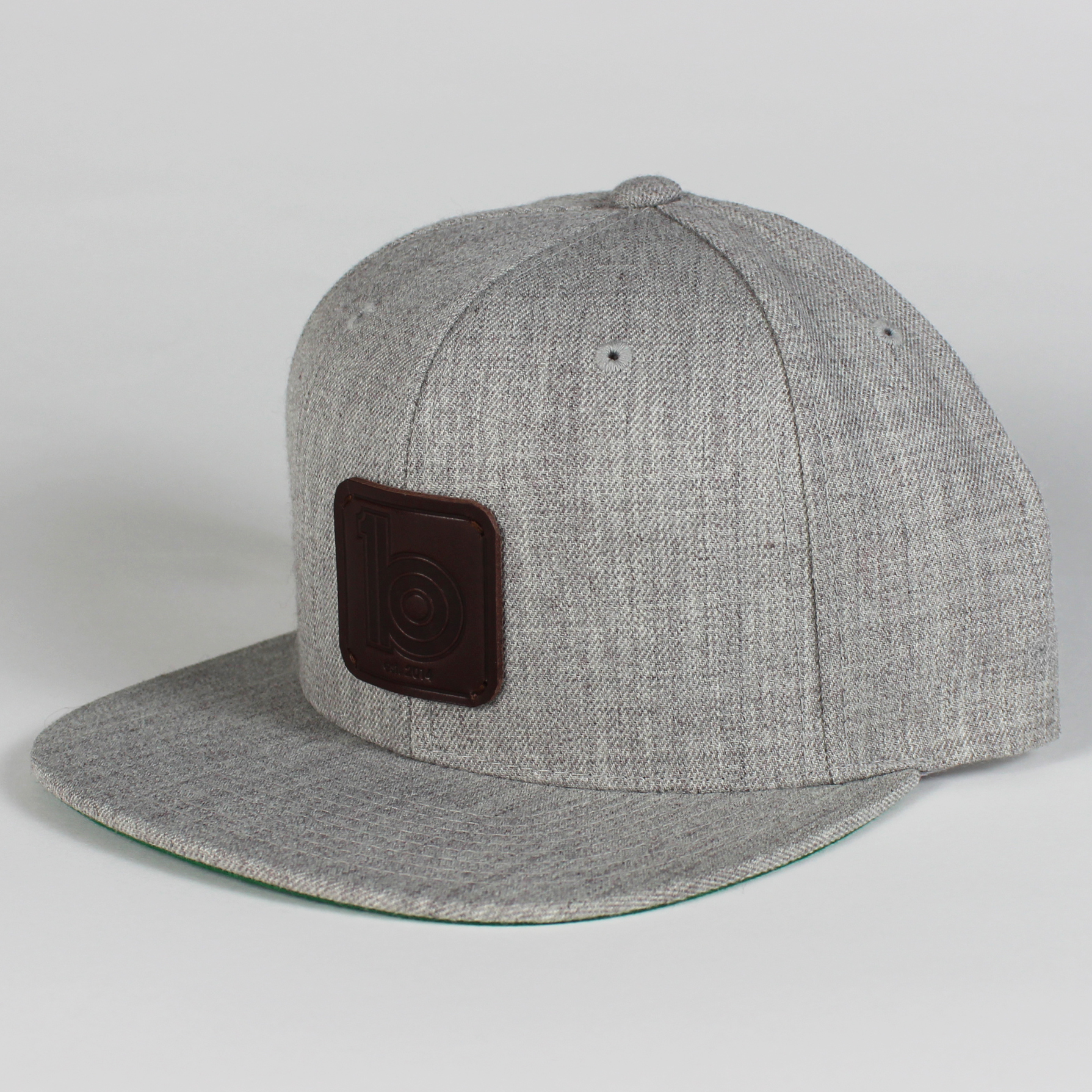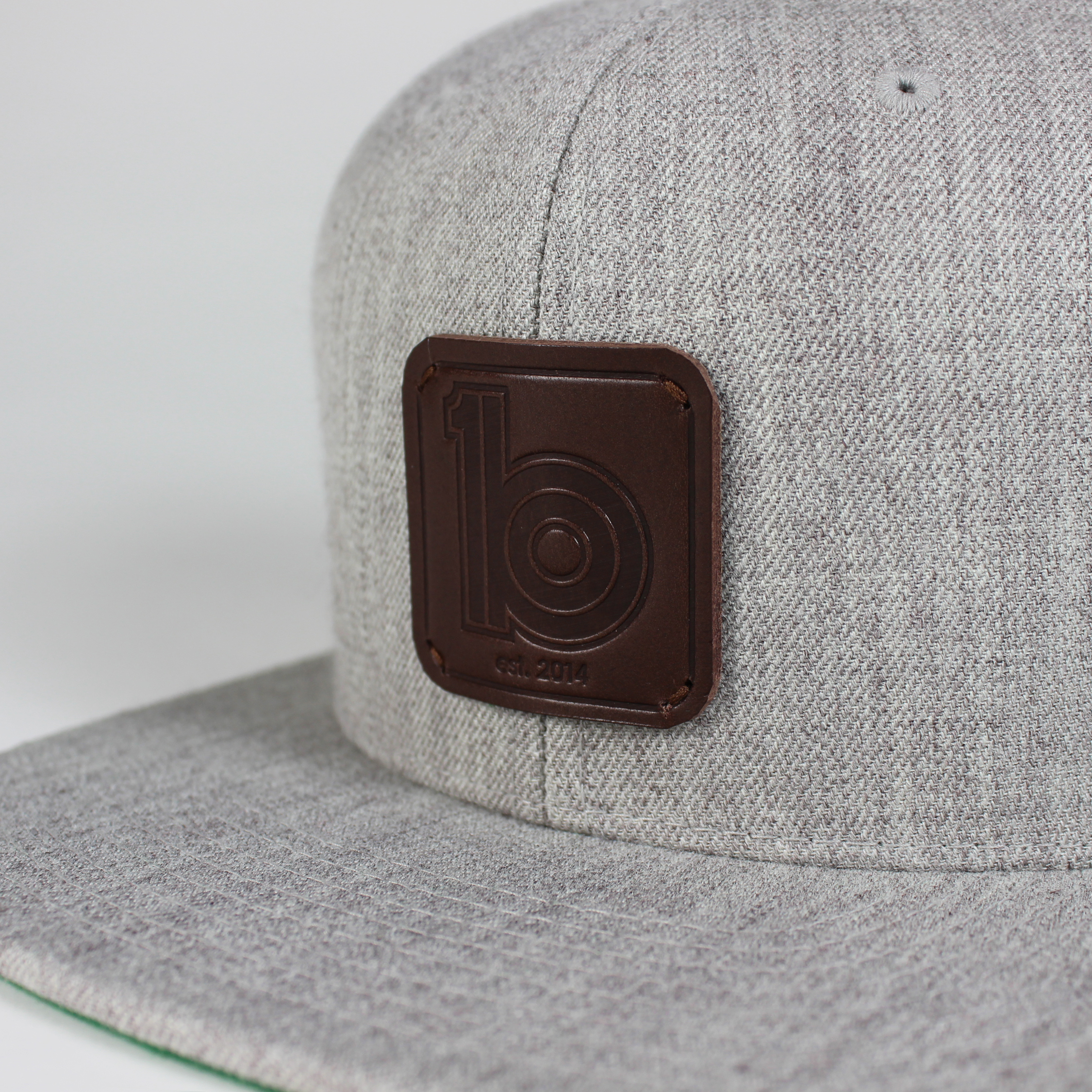 Heather Grey Snapback • 80% acrylic 20% wool flat visor 6 panel cap • adjustable snap back closure • Green under visor • 6 sewn eyelets • Brown vegetable tanned leather patch • Hand stamped with embossed ob1 logo • Hand stitched patch • One size £23 Like Loading...