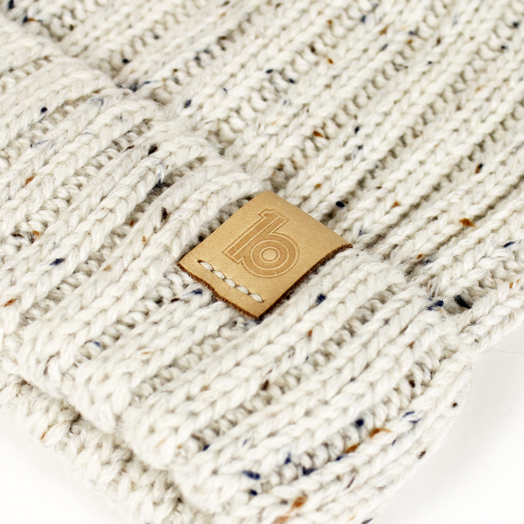 Off White Flecked Beanie • 100% soft feel acrylic beanie • Natural vegetable tanned calf leather patch • Hand stamped with embossed ob1 logo • Hand stitched patch • One size £19 Like Loading...