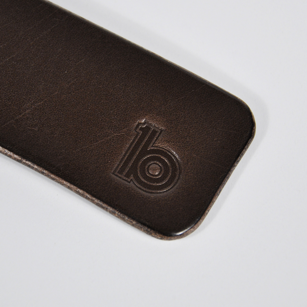 • Hand stamped with embossed ob1 logo on the belt keep and belt end