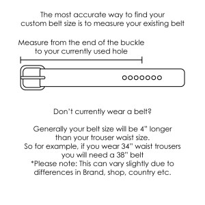 • Custom sized to customer. Please add belt size needed to order. See belt sizing guide at bottom of page for guidance.